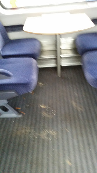 Als der Zug am Bahnsteig anhielt und der Schaffner ausstieg, kam er direkt aus mich zu und fragte ob ich ins Kinderabteil möchte. Gibt es ja gar nicht. Heute ist mein Glücksstag! Das positive vorweg: Gleich neben dem Abteil ist ein extra Platz für Kinderwägen reserviert. Perfekt. Besser kann es doch gar nicht mehr werden. Und das ich in der 2. Klasse reise, obwohl 1. Klasse gebucht ist mir in dem Moment auch egal. Als mir dann der Schaffner die Tür zum Kinderabteil öffnete traute ich meinen Augen nicht. Was auf der Webseite so schön angepriesen wird, sieht in Wahrheit so aus! (Sorry, vor lauter Ekel war ich nicht in der Lage ein paar gute Fotos zu machen). Und das um 8 Uhr morgens. Ich hätte im wahsten Sinne des Wortes kotzen können! Folgendes Kommando für die Grosse: Nichts anfassen. Wir müssen eh gleich umsteigen!